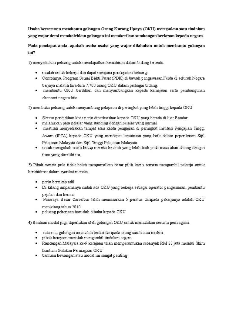 Contoh Karangan Bm Usaha Usaha Untuk Membantu Golongan Oku Wattpad