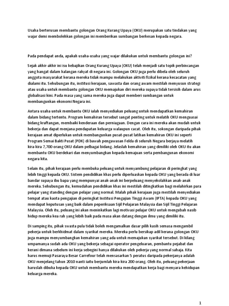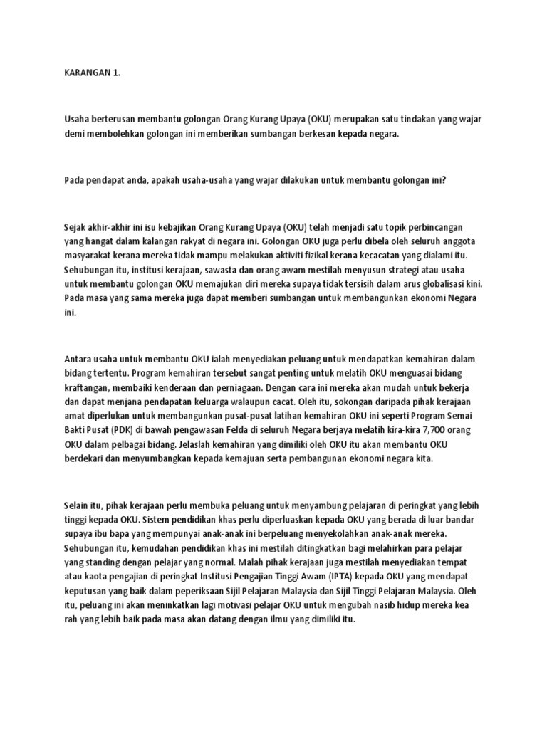 Contoh Karangan Orang Kurang Upaya Oku Karangan Net
